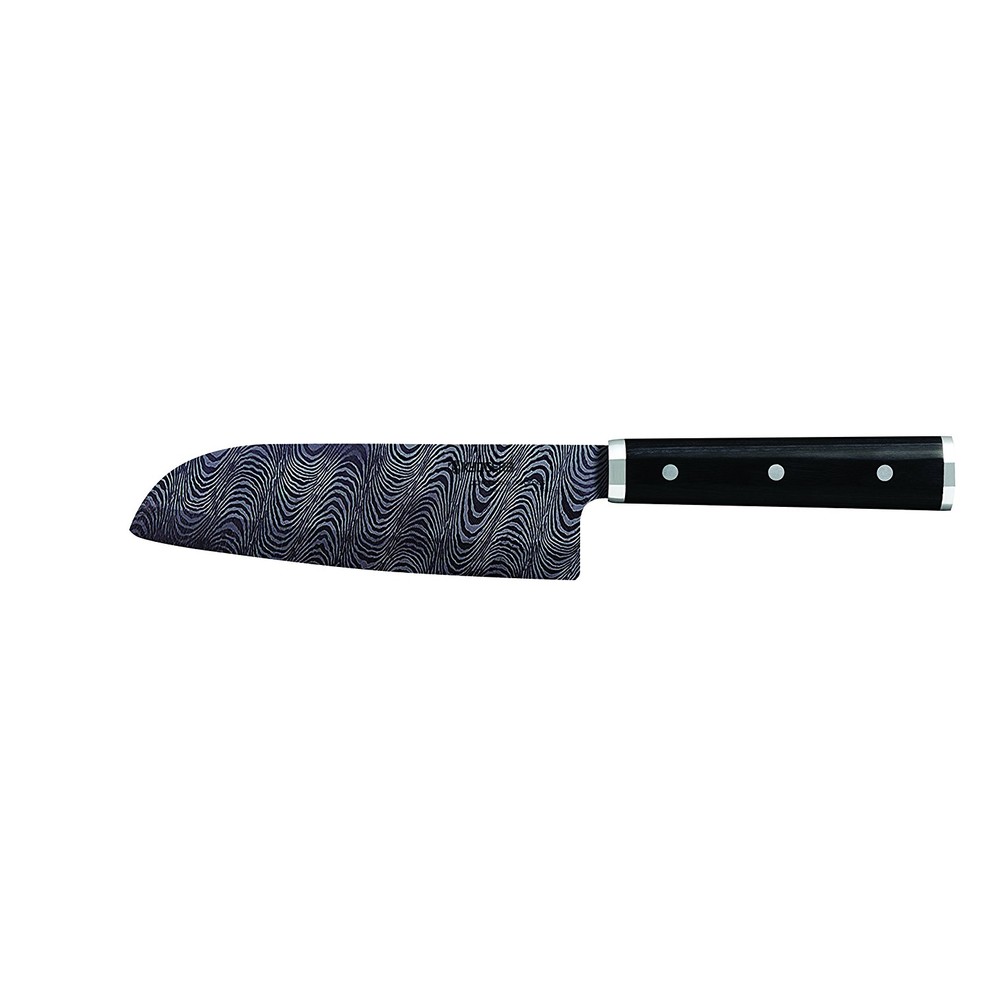 Ce somptueux couteau Santoku Kizuna possède une lame céramique produite selon le procédé HIP ("Hot Isostatic Pressing", compression isostatique à chaud) et est façonné de manière à rappeler les jardins japonais.