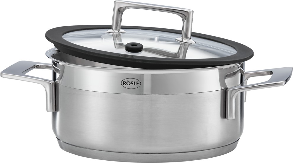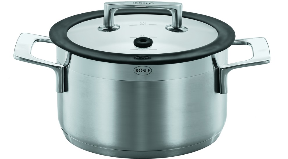 Rösle vous propose une série de batterie de cuisine tout en acier inoxydable 18/10 avec des couvercles en verre borosilicate incassable. Les couvercles des marmites et des casseroles possèdent en plus un joint en silicone qui vous garantit une fermeture étanche et silencieuse.