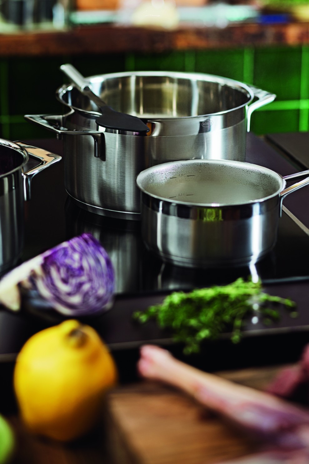 Conçus spécialement pour une cuisine de précision, les marmites ainsi que les casseroles sont équipées d’une graduation intérieure et les couvercles peuvent disposer d’un thermomètre, en option. Les poignées sont conçues en fonte d’acier inoxydable pour une prise en main stable et les manches longs des poêles sont ornés d’un revêtement en silicone pour vous garantir une prise en antidérapante, pour un maximum de sécurité, et résistent à des températures allant jusqu’à 260°C.