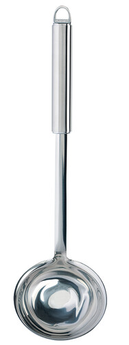 Grande louche en acier inoxydable pour servir vos soupes et vos potages.