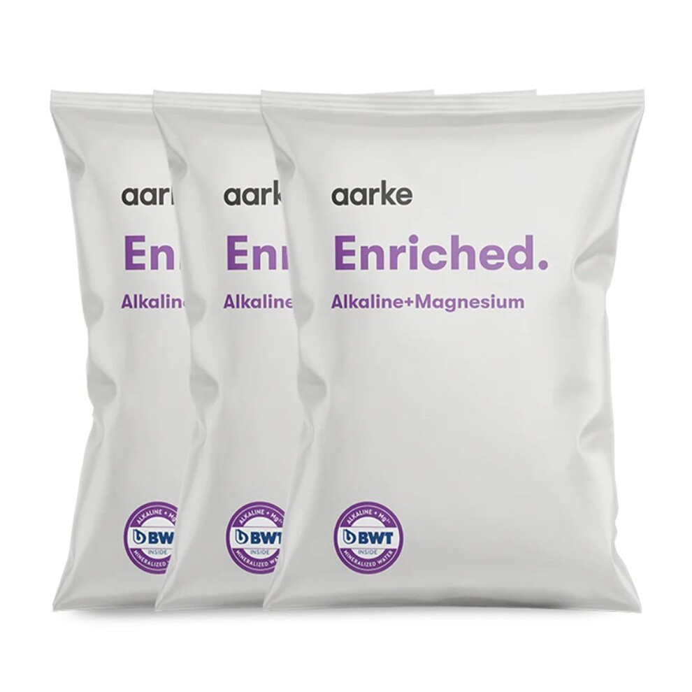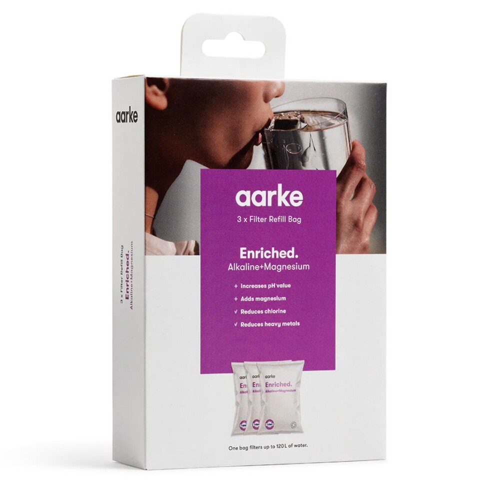 Les granulés filtrants Enriched sont une option de filtration enrichie en minéraux. Ils purifient votre eau en réduisant le chlore et les métaux lourds, tout en ajoutant du magnésium pour la rendre plus savoureuse. Ces granulés augmentent aussi le pH de l'eau, la transformant en eau alcaline. Ils sont conçus spécialement pour le Purifier Aarke et se versent dans sa cartouche filtrante rechargeable.
