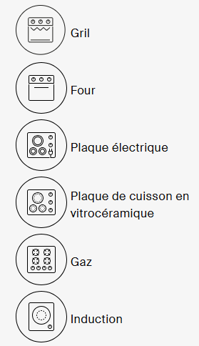 Utilisez le feu de cuisson de la taille la plus appropriée à votre produit. Cela vous permettra d’obtenir des cuissons plus uniformes et d’éviter d’endommager les poignées et les parois. Cette remarque s’adresse tout particulièrement aux plaques à induction : si vous utilisez le mauvais feu de cuisson, la plaque risque de ne pas « reconnaître » le produit.
