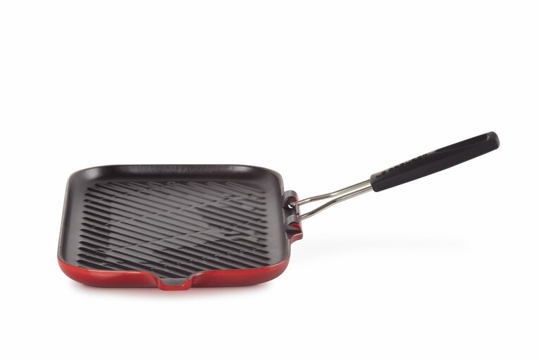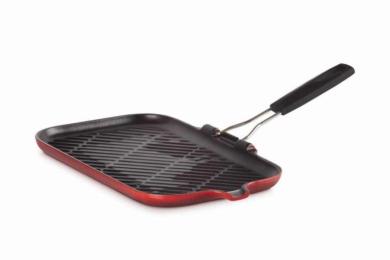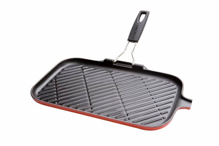 Gril en fonte à poignée repliable Rectangulaire 36 x 20 cm Cerise