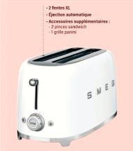 Toaster 4 tranches 2 fentes Extra-large Vintage Années 50 Rose