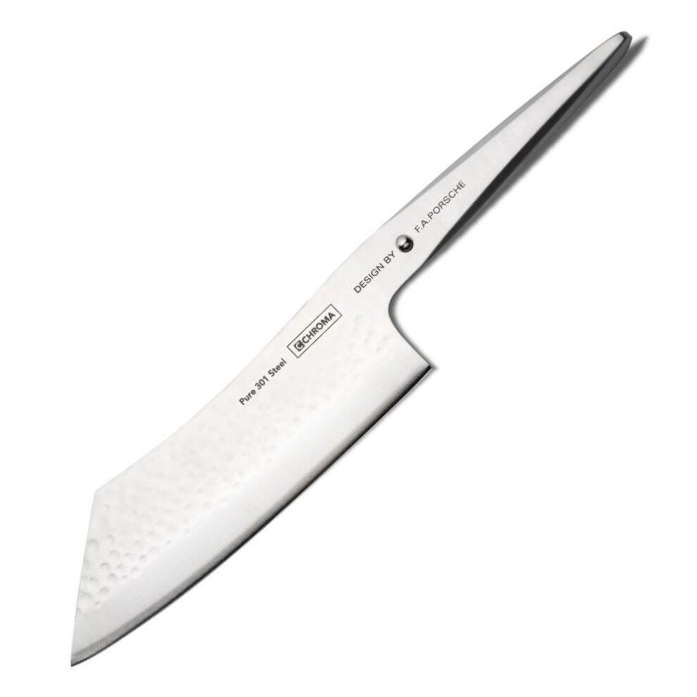 La conception de la collection de couteaux de cuisine Type 301 de Chroma a été confiée au fameux Studio F.A.Porsche. Les designers du studio fondé par le petit fils de Ferdinand Porsche et créateur de la fameuse Porsche 911, ont imaginé des couteaux à la forme innovante et exclusive.