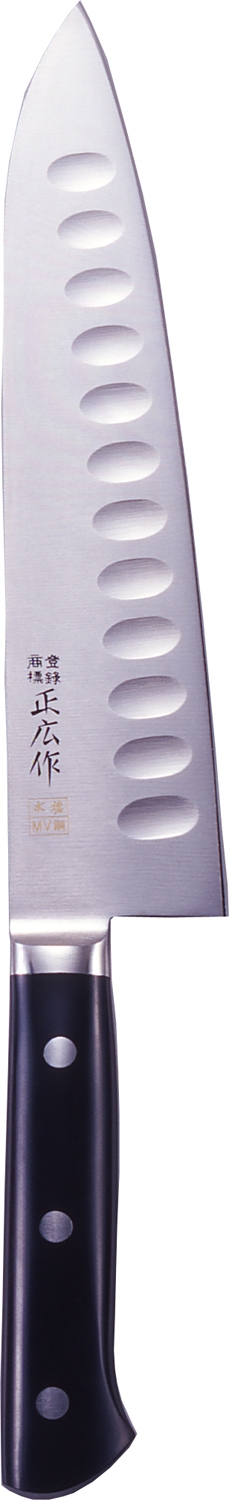 Sa lame en acier MBS26 à 0,9% de carbone avec un triple traitement thermique lui confère un tranchant extrême et robuste. La version alvéolée de ce couteau Masahiro est parfait pour réduire l'adhérence des aliments sur la lame. Sa forme créée des coussins d'air sous les aliments pour limiter l'effet ventouse.