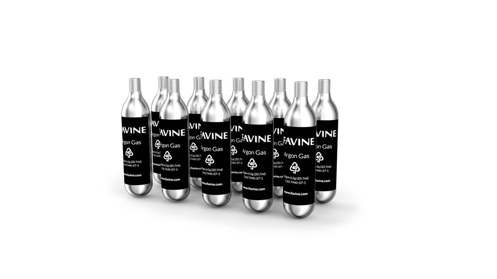 Ces 10 cartouches contiennent de l'argon, un gar inerte et inodore qui permet de reboucher vos bouteilles de vin et conserver votre boisson (sauf vin pétillant)