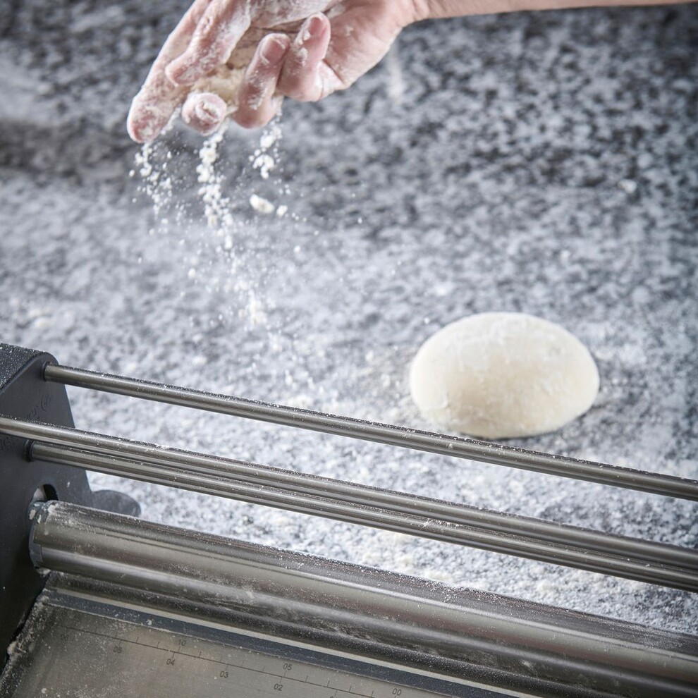• Pour un résultat optimal, commencez par une épaisseur plus grande et réduisez progressivement en passant la pâte plusieurs fois dans le laminoir. Cela évite de déchirer la pâte et garantit une texture uniforme.