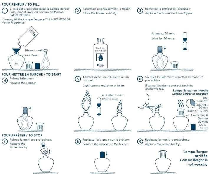 Le respect de ses instructions vous guarantit un fonctionnement optimal de votre Lampe Berger et de son brûleur breveté.