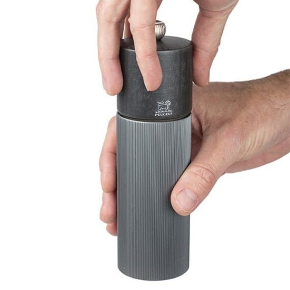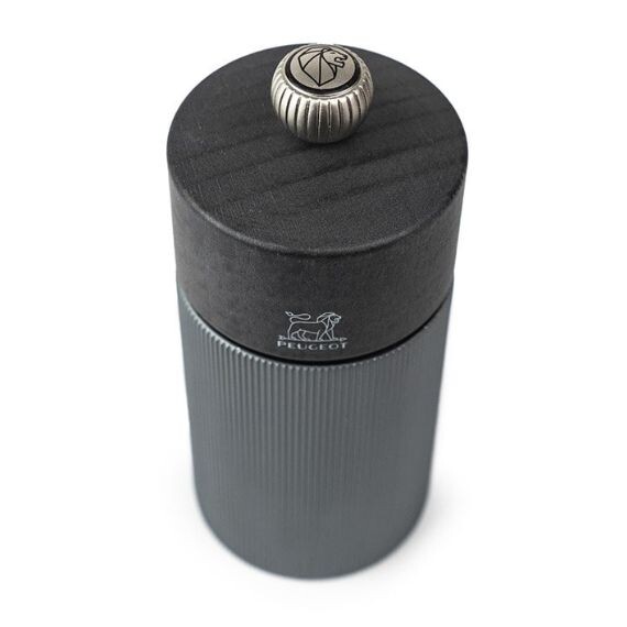 Ce moulin à poivre de la collection Line Carbone se distingue par son design particulier et très contemporain. En effet, le corps est composé d'aluminium strié, qui lui confère une apparence hors du commun. La teinte s'accorde parfaitement au coloris graphite  métallisé de son chapeau en bois.  Outre le design, les moulins de la collection Line sont très performants et résistants. Le mécanisme spécial en acier sel sec est garanti à vie, sans limitation de durée. Fabriquée en France, la collection de moulin reflète le savoir-faire Peugeot. Le petit bouton offre la possibilité de régler la taille du grain.