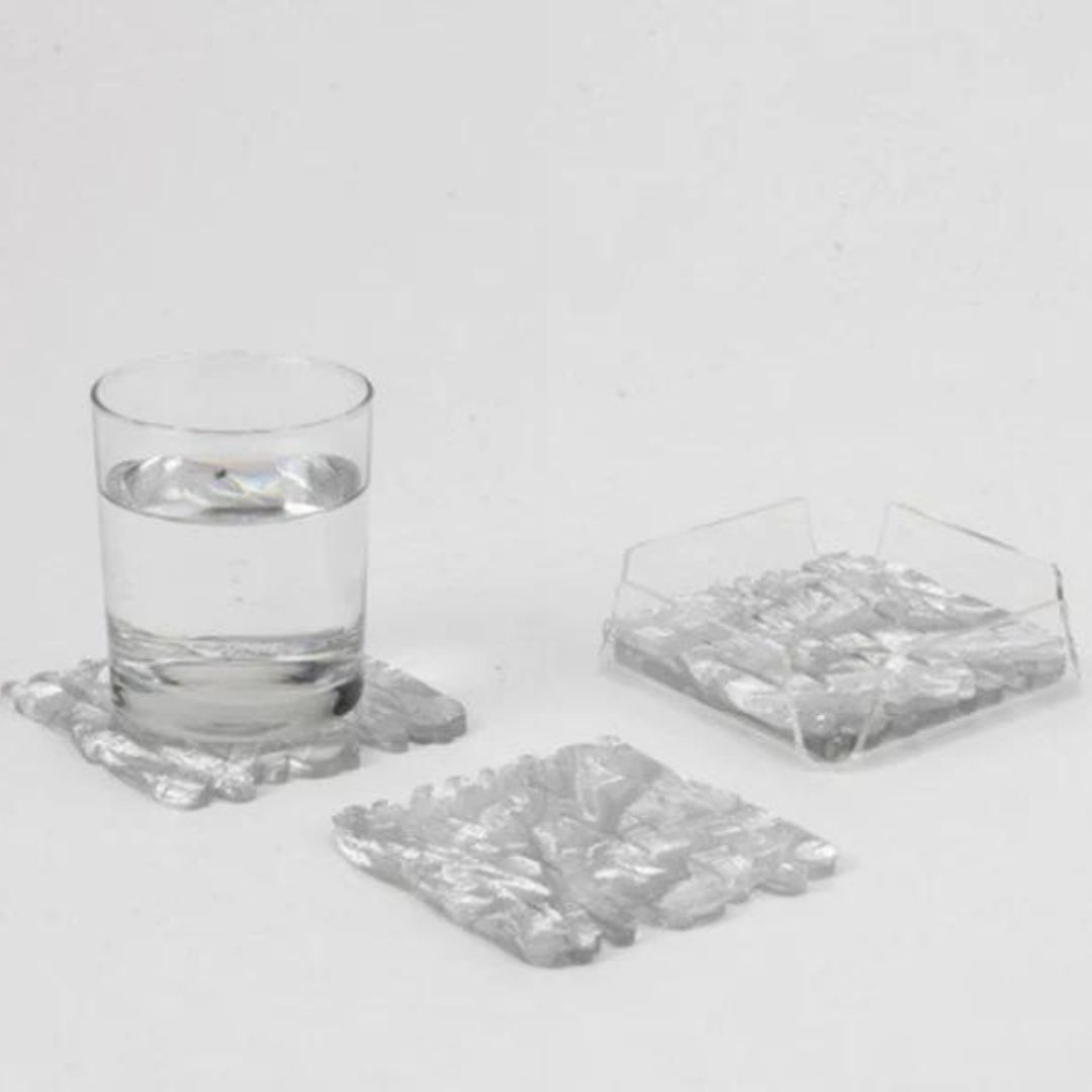 Lot 4 Dessous De Verre Plateau Acrylique Givré (Carrés)