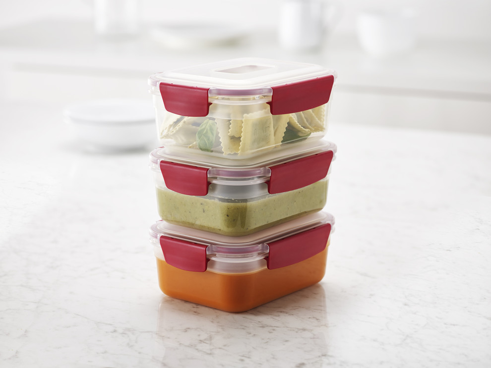 Avec ces boites encastrables c'est désormais possible. Etanches, les bases et les couvercles s'emboitent et ne se perdent plus. Sans bisphénol A, ils sont sains pour la santé mais aussi pour l'environnement et résistent parfaitement à des grandes différences de chaleur entre réfrigérateur et congélateur.De quoi cuisiner de parfaits petits plats et converser la fraicheur plus longtemps.