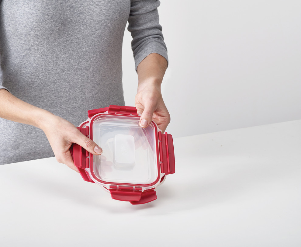 Avant toute utilisation au micro-ondes, veillez à enlever le couvercle et à le poser simplement sur le récipient, sans verrouiller. Faites attention à ne pas vous brûler en sortant la boîte du micro-ondes. Pour éviter les tâches, les fêlures ou d’autres problèmes liés aux hautes températures, évitez de surchauffer les aliments riches en huiles, graisses, sucres ou les aliments à fort pouvoir colorant tels que la tomate. Ne convient pas pour une utilisation au four ou au grill.