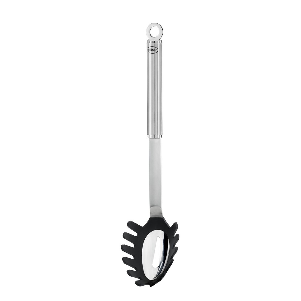 La couronne dentée et le trou au centre de cette louche permettent de mélanger et de servir nouilles et spaghettis aisément.