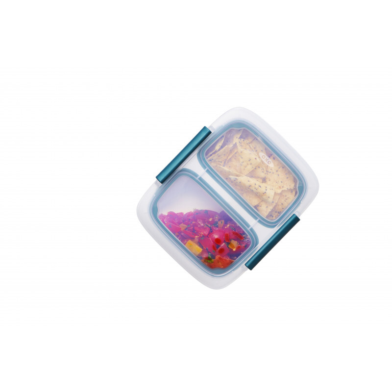 Vous pouvez désormais préparer vos meilleurs repas et les transporter en toute sécurité, grâce aux clips de fermeture de chaque côté et au joint en silicone robuste et durable. Les 2 compartiments vous permettent d’emmener plusieurs préparations sans les mélanger. Unique en son genre, chaque compartiment est hermétique et donc totalement indépendant les uns par rapport aux autres. Chaque aliment est donc préservé des autres et garde sa texture et ses saveurs.