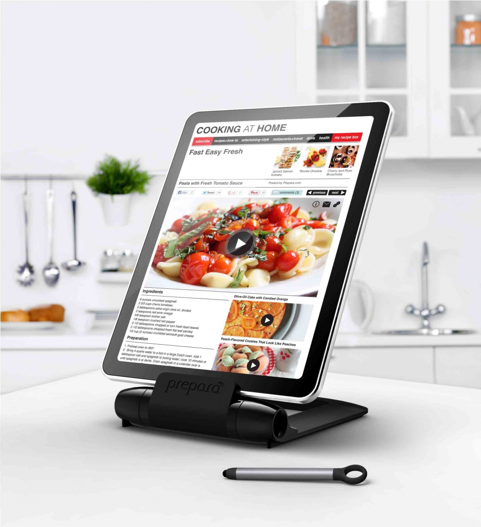 Le lutrin pour tablette tactile de Prépara est fourni avec son stylet. Celui-ci estdiscrètement intégré dans la charnière. Avec lui, vous pourrez aisément accéder à vos recettes sans aucun risque de salissure pour votre écran.