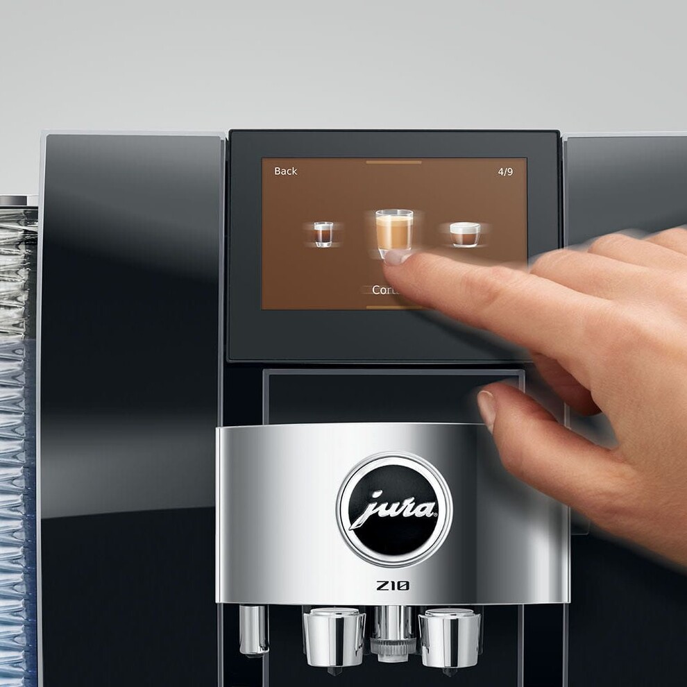 La Z10 offre un confort d'utilisation intuitif qui transforme chaque interaction en véritable plaisir. D'un simple toucher ou d'un glissement, naviguez facilement dans le menu et les quatre univers de dégustation, mis en valeur par des codes couleurs distinctifs. La richesse de l'offre reste ainsi toujours claire et parfaitement lisible.