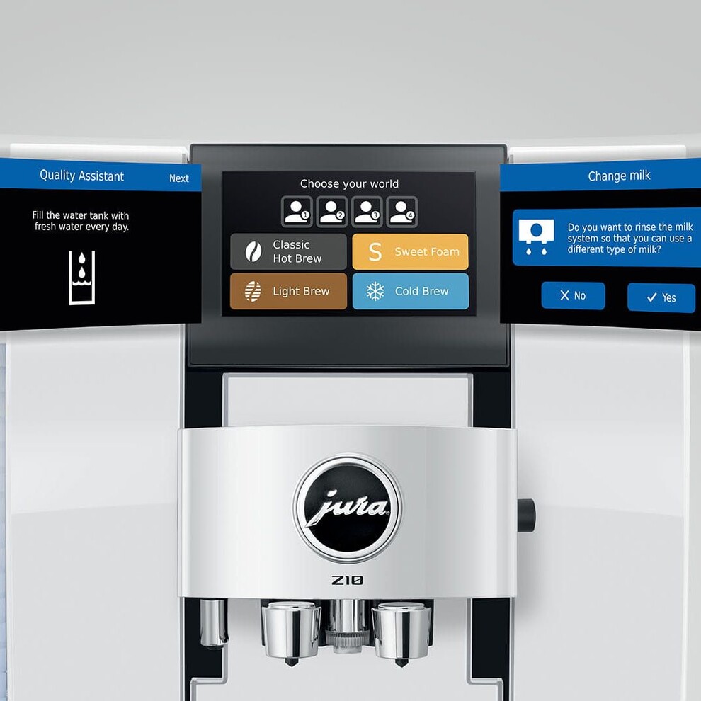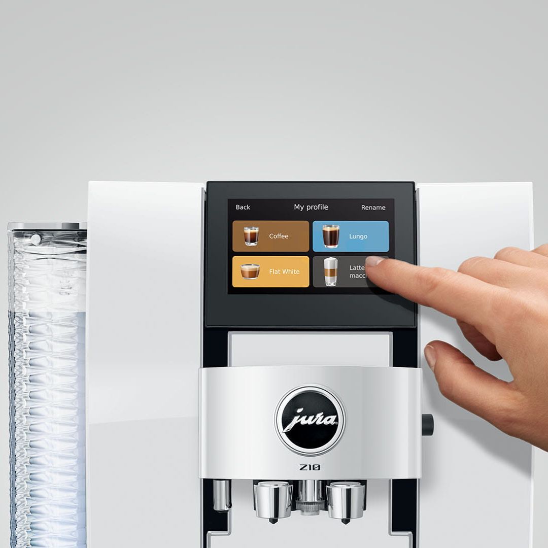 La Z10 offre un confort d'utilisation intuitif qui transforme chaque interaction en véritable plaisir. D'un simple toucher ou d'un glissement, naviguez facilement dans le menu et les quatre univers de dégustation, mis en valeur par des codes couleurs distinctifs. La richesse de l'offre reste ainsi toujours claire et parfaitement lisible.