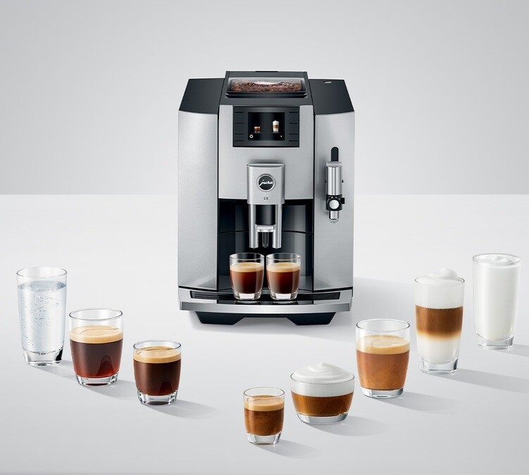 Découvrez la machine à café E8 Moonlight (EB) qui fait le plein de technologie pour réaliser des cafés riches en arômes et autres boissons lactées délicieuses.