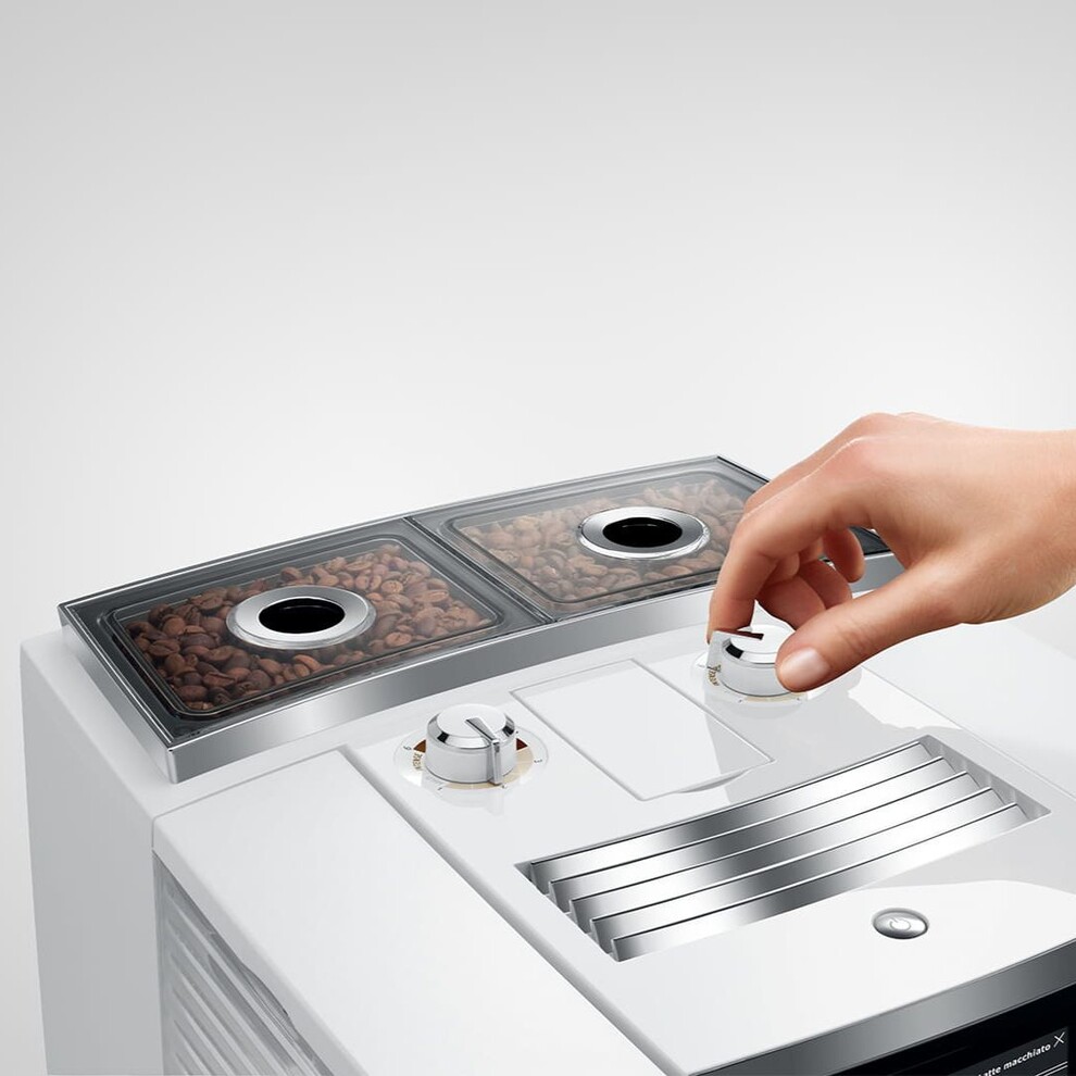 La toute nouvelle J8 Twin de Jura redéfinit l'expérience du café avec son innovation révolutionnaire. Dotée de deux broyeurs de précision Diamond, cette machine à café exceptionnelle vous offre une polyvalence maximale. Fini les compromis entre différentes variétés de grains, la J8 Twin vous permet de savourer des cafés uniques, fraîchement moulus, et ce, sans utiliser de capsules.