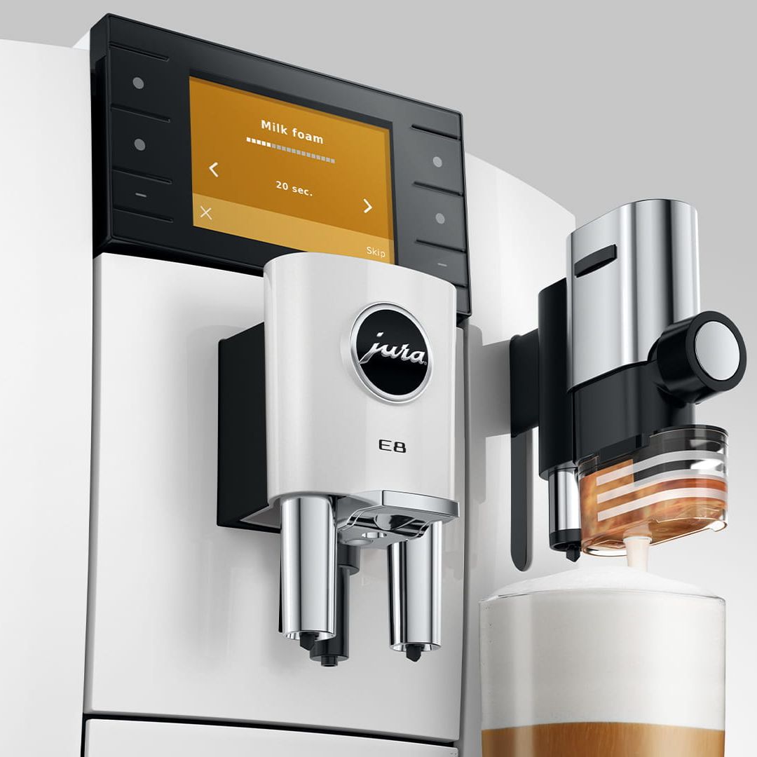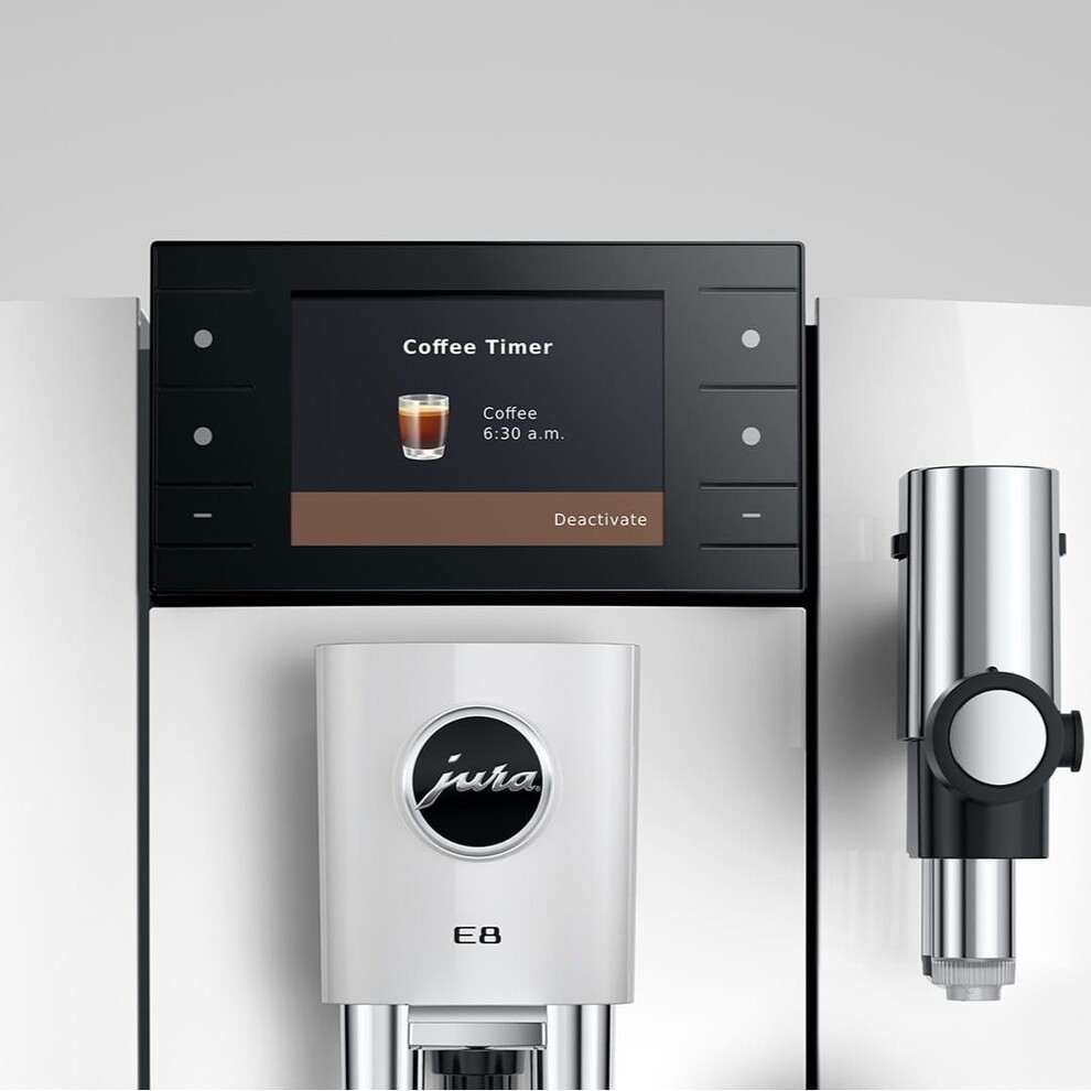 L'E8 redéfinit le confort d'utilisation. Programmez votre café du matin grâce au Coffee Timer et à l'application J.O.E.® : il vous attend à votre réveil pour un démarrage de journée en douceur. L'Assistant Qualité optimise l'entretien en économisant les ressources et garantit une hygiène irréprochable pour une dégustation toujours parfaite.