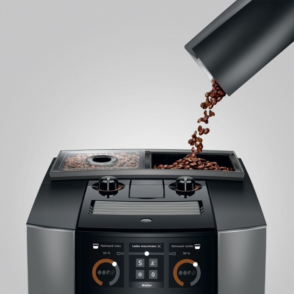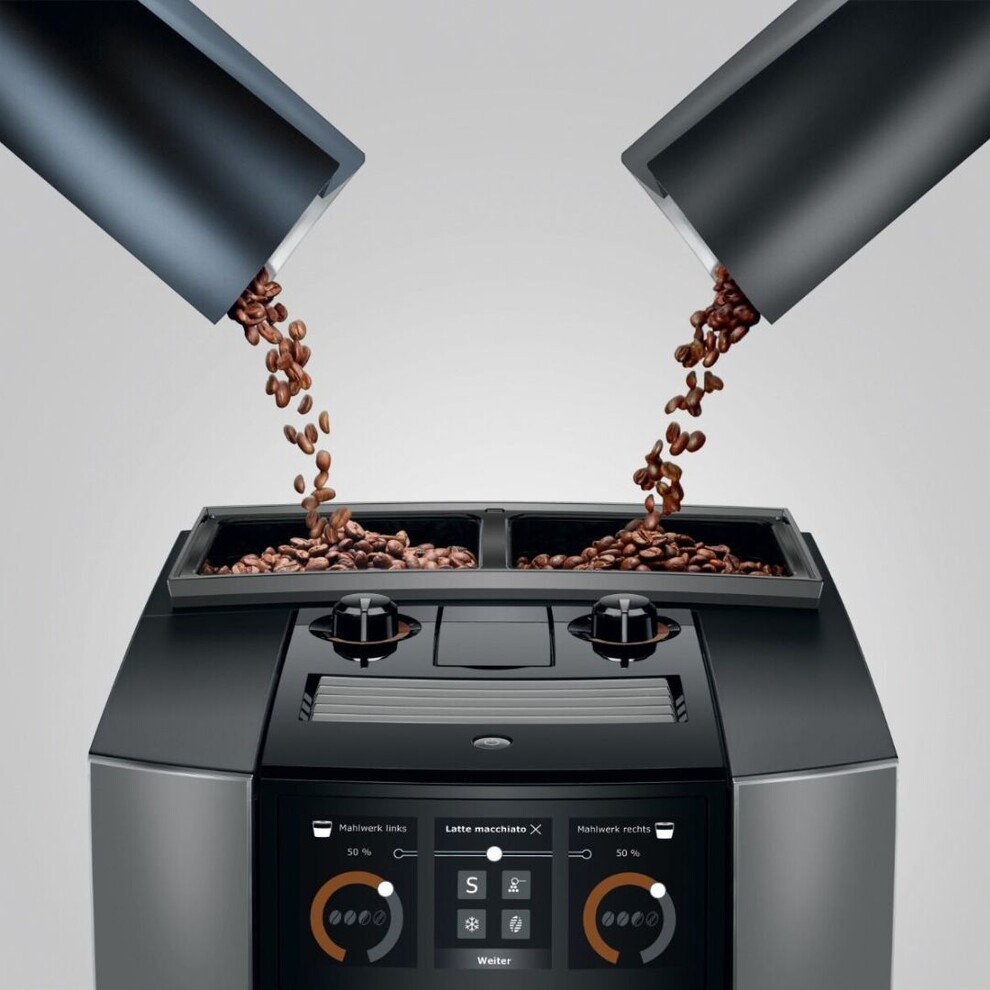 Elle vous donne le choix entre deux types de café : caféiné ou décaféiné, torréfaction claire ou foncée — cette machine polyvalente exalte chaque variété pour un résultat d’exception. Grâce à une conception ingénieuse, la J10 Twin intègre deux moulins hautes performances P.A.G.3+, assurant une mouture régulière et précise, ainsi qu’un contrôle actif du degré de mouture pour un arôme parfaitement maîtrisé. Une phase de repos entre les préparations préserve les moulins et garantit leur longévité, tout en maintenant une qualité de goût optimale.