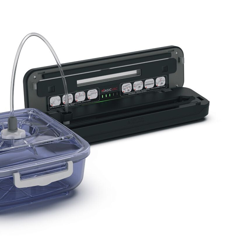 Un simple raccord de tuyau permet l'utilisation pour créer un vide pour les accessoires et avec sa fenêtre de visualisation vous verrez le vide d'air agir sur vos aliments.