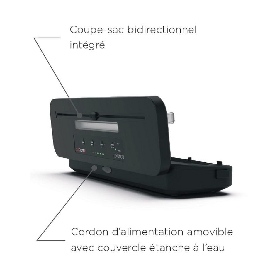 Entièrement automatique, elle est dotée de coupe-sacs des deux côtés qui permet de désengager votre sac mis sous vide.