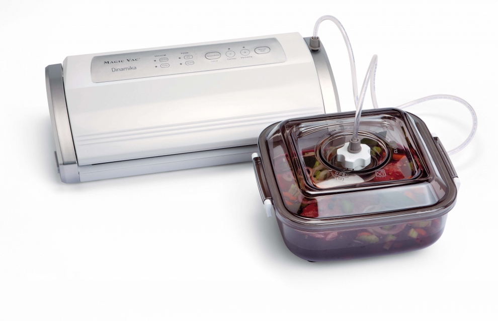 La machine à emballer sous vide DINAMIKA de WISMER est une machine qui sert à emballer sous vide rapidement vos aliments à la maison. Fonctionnelle et simple d'utilisation, cette machine vous permet de conserver plus longtemps tous vos aliments. Que ce soit au frigo, au congélateur ou à température ambiante, les aliments ainsi mis sous vide pourront être conservés 2 à 3 fois plus longtemps !