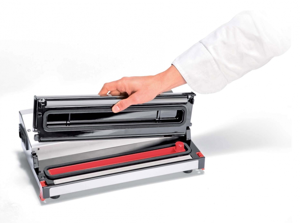 Cette machine vous offrira des performances professionnelles avec ses programmes à 3 niveaux de temps de soudure : sec, humide, très humide. Ses cycles sont complètement automatiques et elle dispose d’un cycle manuel avec une fonction de soudure instantanée pour les aliments délicats. Un cycle spécifique vous permettra de faire des sacs à partir des rouleaux et un autre cycle spécifique est adapté aux récipients hermétiques. La barre de soudure équipée d’un système de refroidissement vous permettra un usage intensif de votre machine à emballer sous vide.