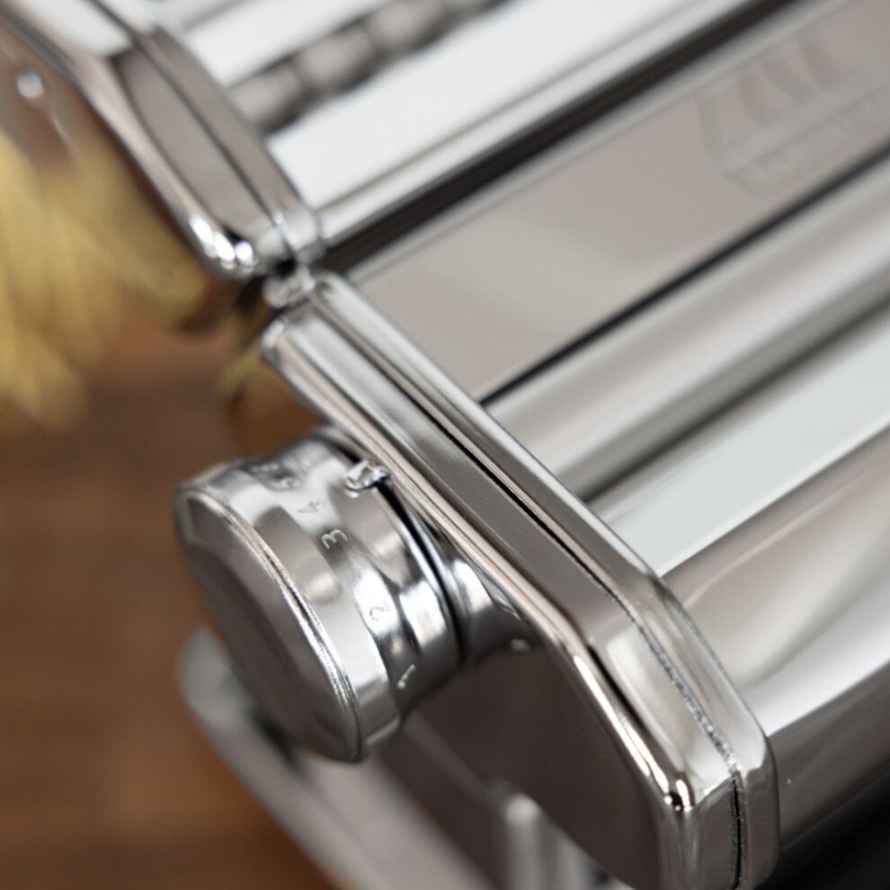 La machine à pâtes manuelle Atlas 150 Marcato Classic rend la fabrication des pâtes laminées facile et rapide. Toutes les recettes de taglioni, fettuccine et lasagnes s’offrent à vous, des plus classiques aux plus inventives. Le résultat sera à la hauteur de toutes vos espérances. Vous pourrez étirer et étirer encore des feuilles de pâtes d’une largeur de 15 cm jusqu’à atteindre une finesse incroyable de 0,6 mm. Le régulateur d’épaisseur offre 10 réglages jusqu’à 4,8 mm, de quoi laisser libre cours à toutes vos envies de pâtes plates. Vous pourrez varier les plaisirs à l’infini avec des pâtes fraîches qui ne décevront pas les plus fins gourmets.