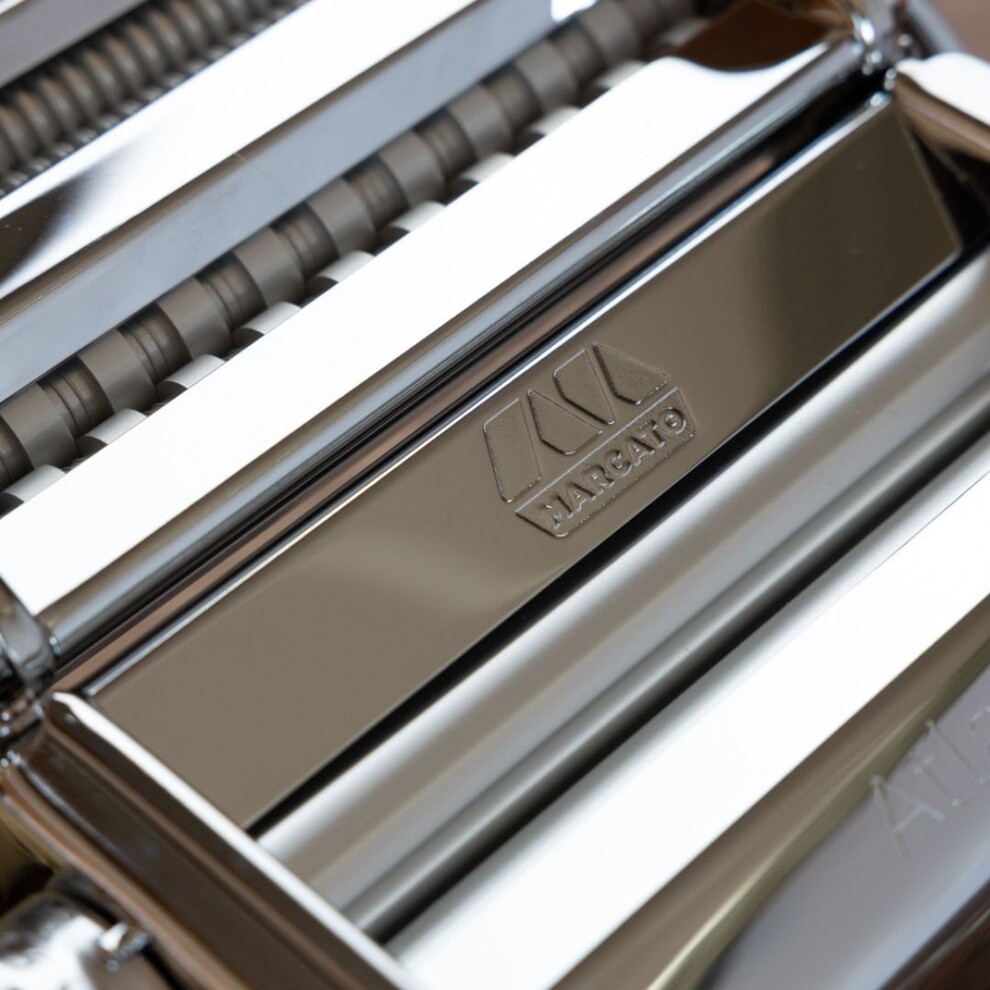 Depuis plus de 85 ans, ce fabricant italien attache un soin particulier au choix des matériaux utilisés pour ses machines, qu'elles soient professionnelles ou pour un usage domestique. Le corps de la machine Marcato est en acier chromé de haute qualité. Les rouleaux en contact avec la pâte sont en alliage d'aluminium anodisé, un matériau totalement sûr qui ne laisse aucun résidu toxique sur les aliments. Ils se nettoient très facilement en quelques coups de pinceau.