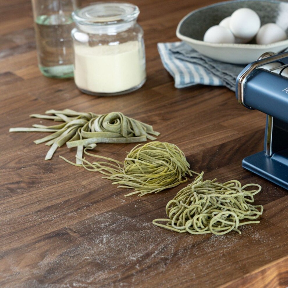 La machine à pâtes manuelle Atlas 150 Color Bleu Poudré convient à la préparation de 3 types de pâtes fraîches maison : les lasagnes, les fettuccine 6 mm et les tagliolini 1,5 mm. Grâce à la bride de fixation fournie, la machine à pâtes Marcato Design se fixe à la table de travail très facilement. De la farine, des œufs et un peu d'eau, c'est tout ce dont vous aurez besoin pour préparer une pâte idéale. Après l'avoir découpée en morceaux, vous passerez ceux-ci plusieurs fois dans le laminoir. Un régulateur à 10 positions permet de choisir une épaisseur idéale en fonction de la recette à réaliser. Vos feuilles de pâte s'étireront un peu plus à chaque passage sans se casser. Elles pourront atteindre une épaisseur inférieure au millimètre. Il ne vous restera plus qu'à passer à l'étape finale de la découpe. En quelques tours de manivelle, vous obtiendrez des pâtes fraîches maison que vous pourrez plonger directement dans l'eau frémissante ou laisser sécher sur le Tacapasta Marcato. La machine à pâtes manuelle Atlas 150 Color Vert est compatible avec le moteur Pastadrive pour une utilisation plus intensive. De nombreux accessoires permettent d'enrichir encore plus les fonctionnalités de cette machine de très grande qualité.