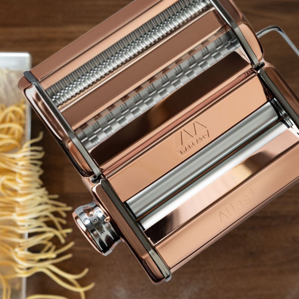 Qui n'a pas rêvé de confectionner facilement des pâtes fraîches maison comme en Italie ? La machine à pâtes manuelle Atlas 150 Color Cuivre met ce rêve à votre portée avec un appareil aussi fiable que les machines professionnelles. Lasagnes, fettuccine et tagliolini enchanteront votre table.