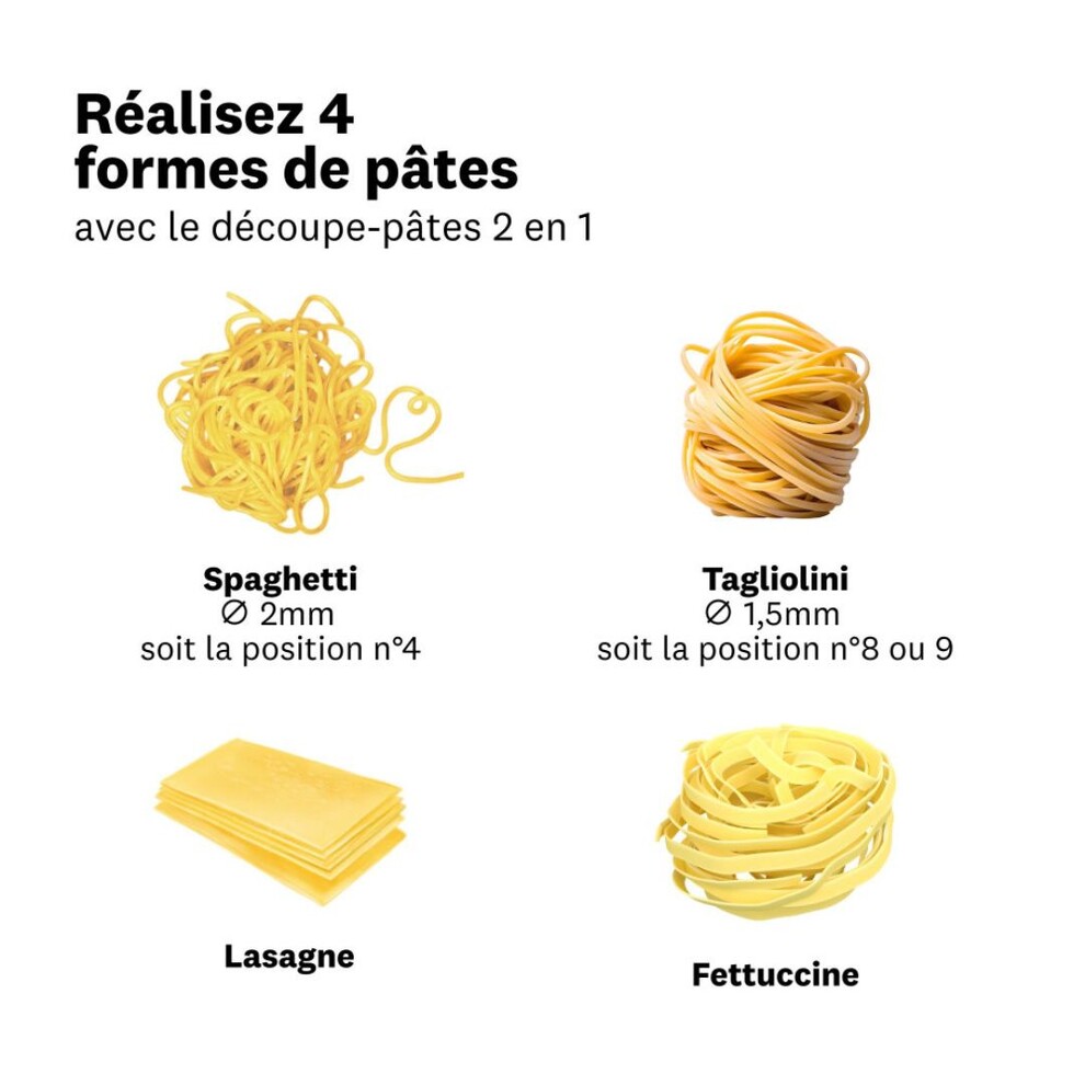 La machine à pâtes manuelle Atlas 150 Color Rose Poudré convient à la préparation de 3 types de pâtes fraîches maison : les lasagnes, les fettuccine 6 mm et les tagliolini 1,5 mm. Grâce à la bride de fixation fournie, la machine à pâtes Marcato Design se fixe à la table de travail très facilement. De la farine, des œufs et un peu d'eau, c'est tout ce dont vous aurez besoin pour préparer une pâte idéale. Après l'avoir découpée en morceaux, vous passerez ceux-ci plusieurs fois dans le laminoir. Un régulateur à 10 positions permet de choisir une épaisseur idéale en fonction de la recette à réaliser. Vos feuilles de pâte s'étireront un peu plus à chaque passage sans se casser. Elles pourront atteindre une épaisseur inférieure au millimètre. Il ne vous restera plus qu'à passer à l'étape finale de la découpe. En quelques tours de manivelle, vous obtiendrez des pâtes fraîches maison que vous pourrez plonger directement dans l'eau frémissante ou laisser sécher sur le Tacapasta Marcato. La machine à pâtes manuelle Atlas 150 Color Vert est compatible avec le moteur Pastadrive pour une utilisation plus intensive. De nombreux accessoires permettent d'enrichir encore plus les fonctionnalités de cette machine de très grande qualité.