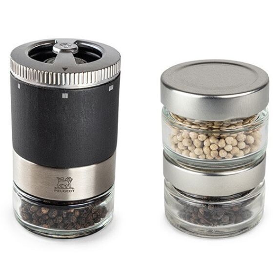 Doté de réservoirs interchangeables, ce moulin à poivre Made in France Maestro vous invite à une expérience gustative inédite autour du poivre. Le coffret Maestro propose l'essentiel pour partir à la découverte du monde des poivres ! Le choix de la mouture joue un rôle essentiel pour exprimer pleinement les arômes du poivre. Pour exprimer la puissance du poivre, priviliégiez une mouture fine. En revanche, pour faire ressortir les arômes du poivre, faites le choix d'une grosse mouture. C’est pourquoi Peugeot a équipé son moulin Maestro du réglage de mouture u’Select gradué de 1 à 6 !
