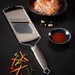 Le support en silicone antidérapant permet de travailler en toute sécurité et dans n’importe quelle position. La râpe peut être utilisée directement au-dessus d’un bol.