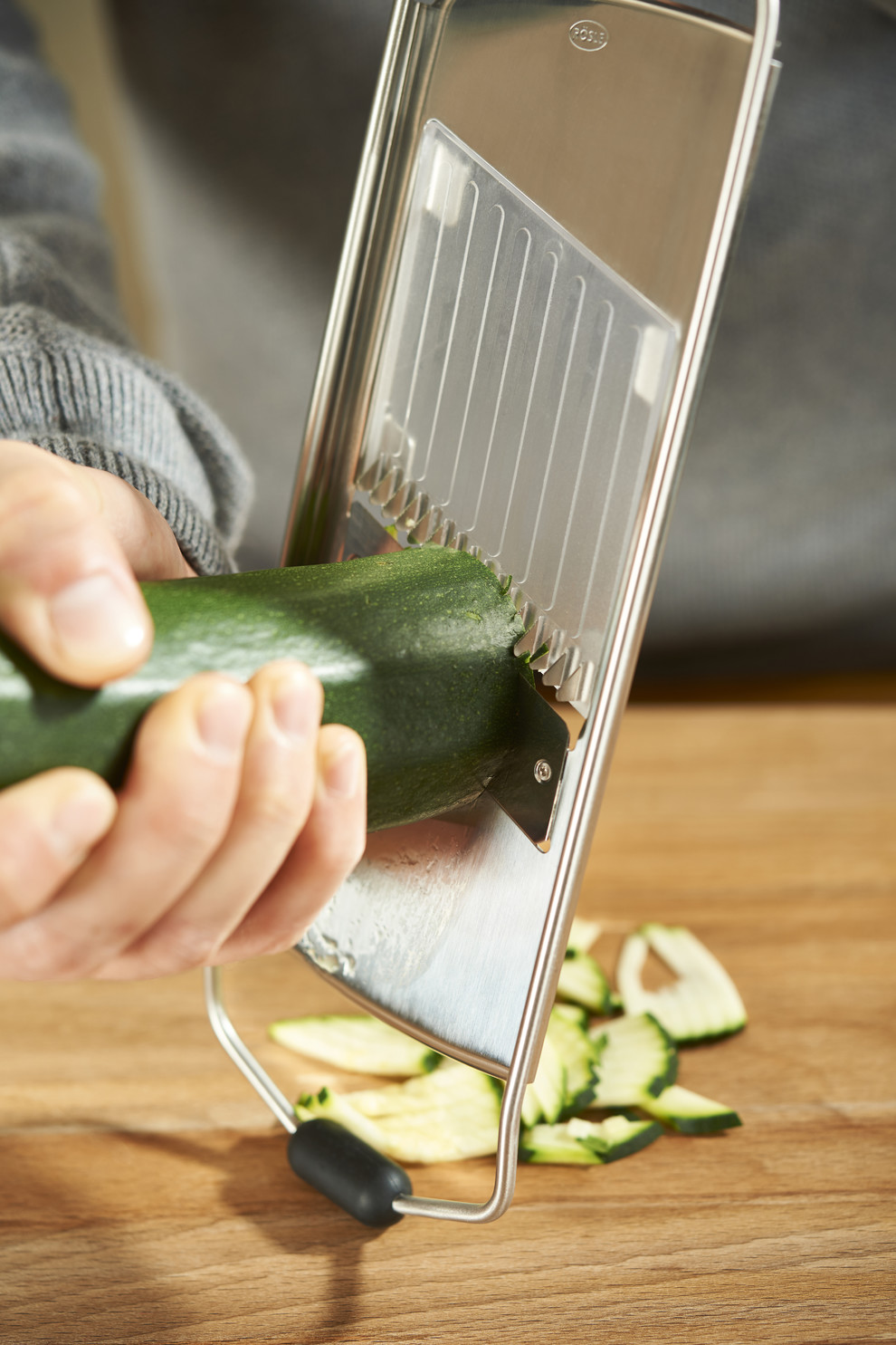 Coupez et émincez avec plaisir tous vos légumes avec la mandoline acier inoxydable de la marque Rösle.