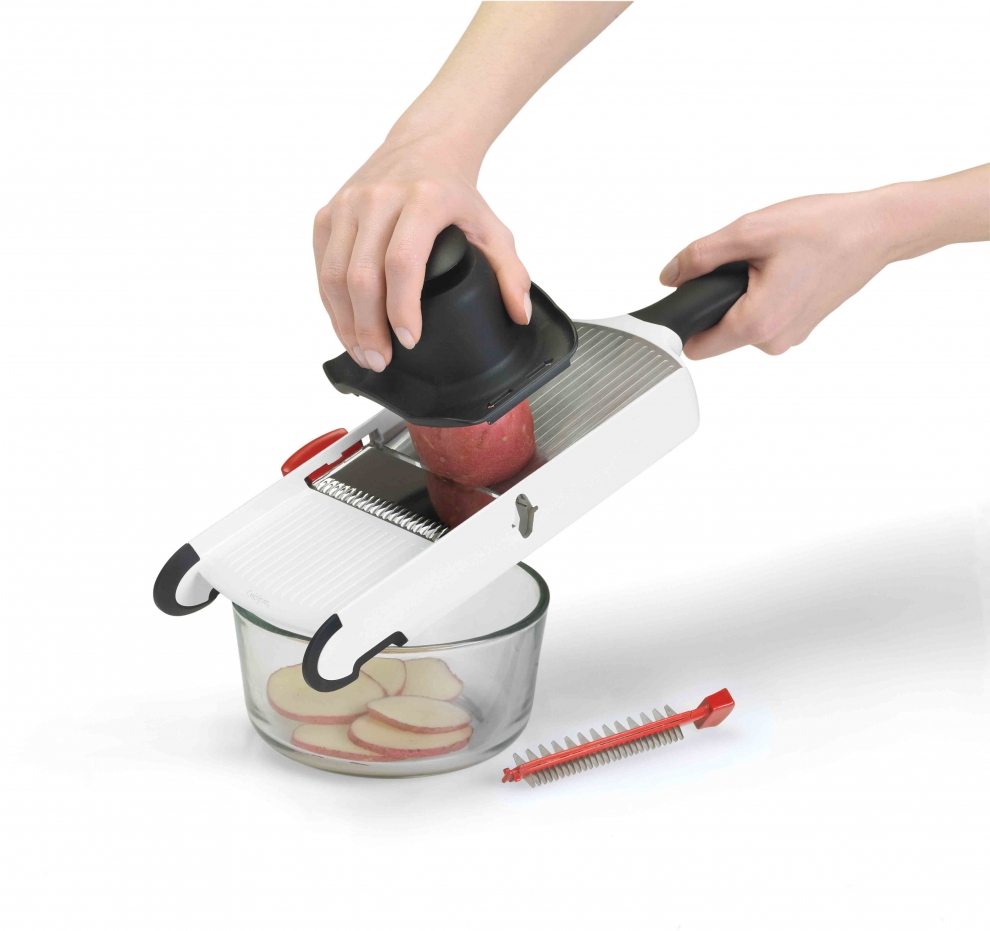 La mandoline multifonction Cuisipro est dotée de rainures qui augmentent la surface de frottement et sa performance.