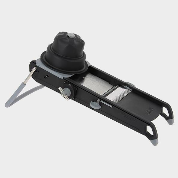 La mandoline swing 2.0 de la marque De Buyer a une excellente prise en main avec son poussoir ergonomique qui vous procure une sécurité totale sans contact avec les lames.