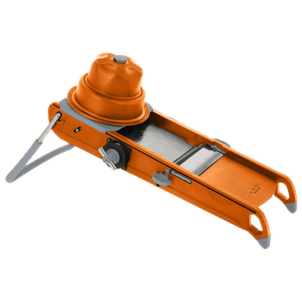 La mandoline swing 2.0 de la marque De Buyer a une excellente prise en main avec son poussoir ergonomique qui vous procure une sécurité totale sans contact avec les lames.