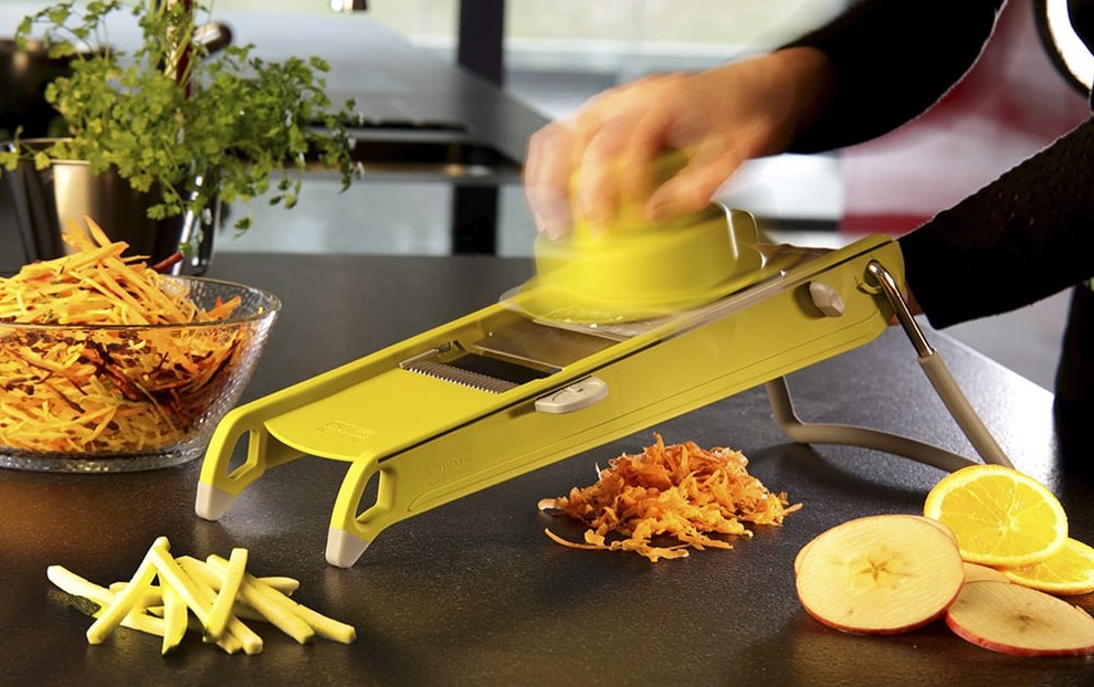 La mandoline swing 2.0 de la marque De Buyer fait tout ... y compris la brunoise !