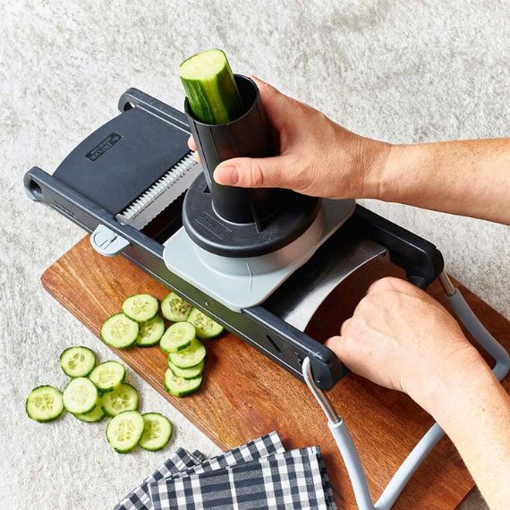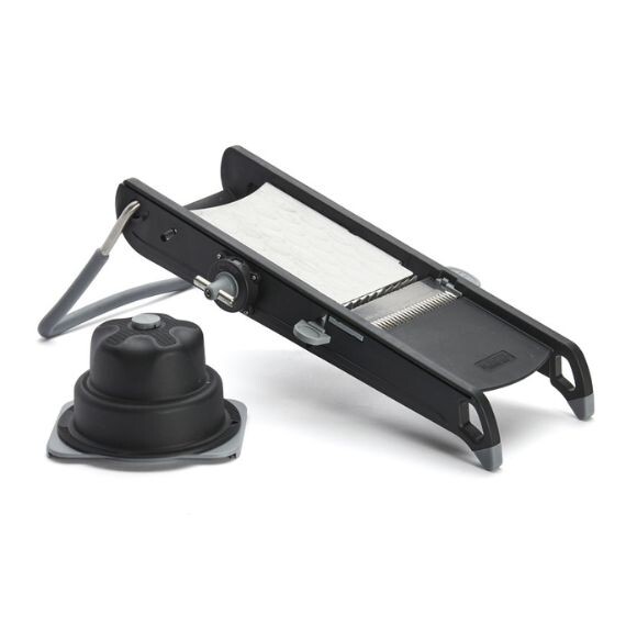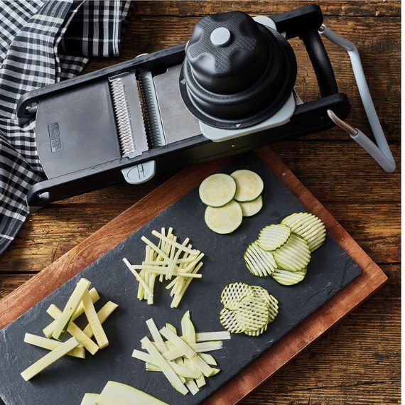 Avec la Mandoline Swing plus noire De Buyer, la découpe de vos fruits et légumes devient facile et nette !