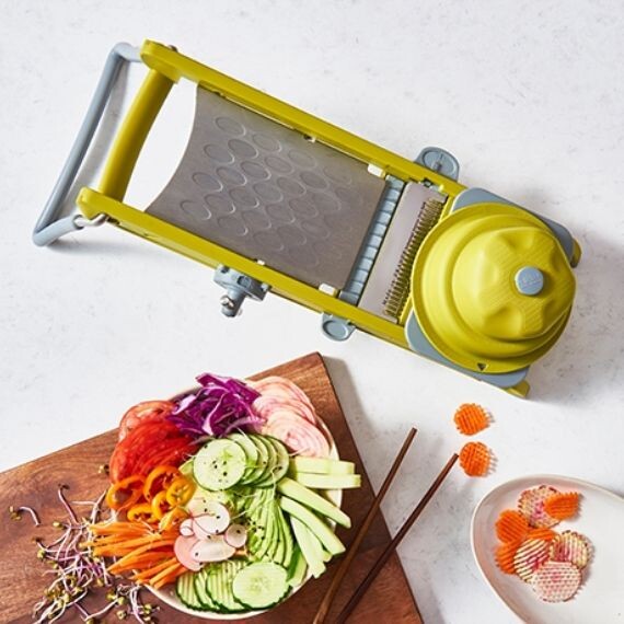 Avec la Mandoline Swing plus verte De Buyer, la découpe de vos fruits et légumes devient facile et nette !