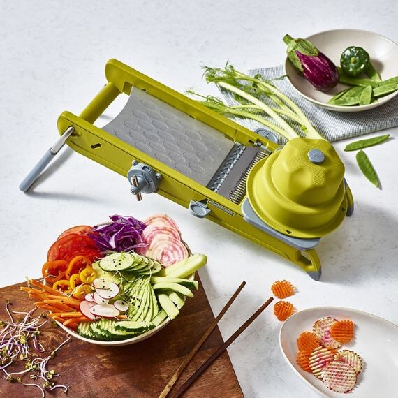 La Mandoline Swing plus De Buyer verte sera indispensable pour la découpe de fruits ou de légumes