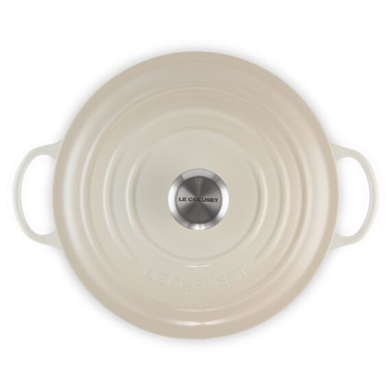 Très résistante aux chocs thermiques, la marmite Le Creuset passe sans problème du réfrigérateur ou du congélateur à la plaque de cuisson. De plus, le nouveau bouton central est désormais fabriqué en acier inoxydable et résiste à de très fortes chaleurs.