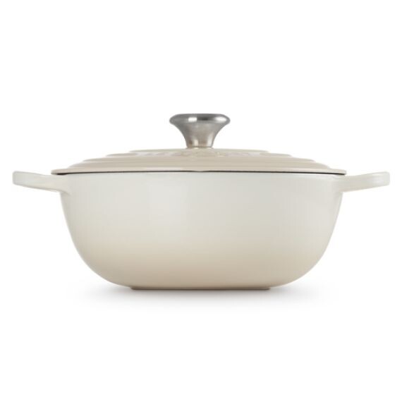 Très résistante aux chocs thermiques, la marmite Le Creuset passe sans problème du réfrigérateur ou du congélateur à la plaque de cuisson. De plus, le nouveau bouton central est désormais fabriqué en acier inoxydable et résiste à de très fortes chaleurs.