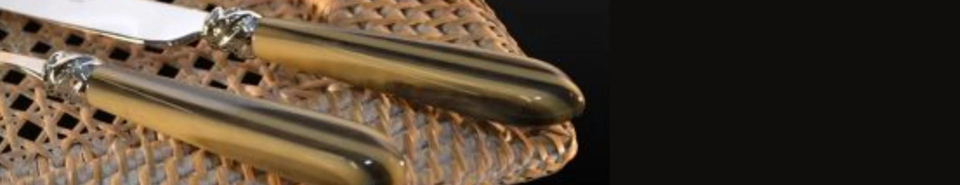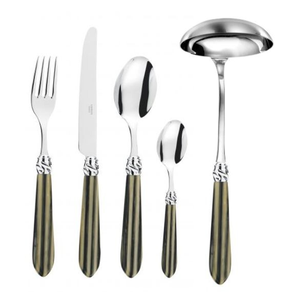 Cette ligne comporte tous les couverts : table, dessert, poisson, gâteau et pièces de service telles que pelle à tarte, pelle à riz, pelle à lasagne, service salade, service à servir, service poisson, louche à potage, cuillère sauce, couteau steak, couteau à fromage, couteau pain, tartineur.