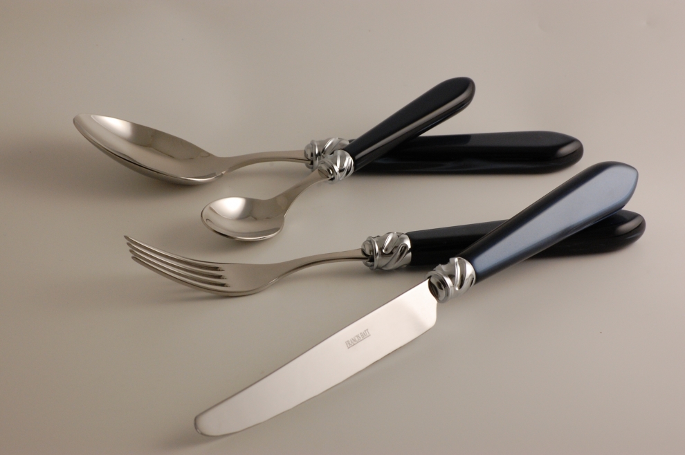 Cette ligne comporte tous les couverts : table, dessert, poisson, gâteau et pièces de service telles que pelle à tarte, pelle à riz, pelle à lasagne, service salade, service à servir, service poisson, louche à potage, cuillère sauce, couteau steak, couteau à fromage, couteau pain, tartineur.