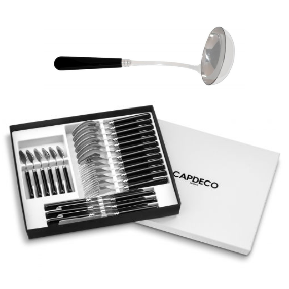 Le coffret Newbridge noir composé de 49 couverts de table, classiques et intemporels de l'art de la table, qui apporteront classe et élégance à votre table.